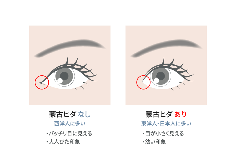 | 対象部位 | 目頭(内側)の蒙古ひだ | まぶた上部の皮膚・脂肪 |